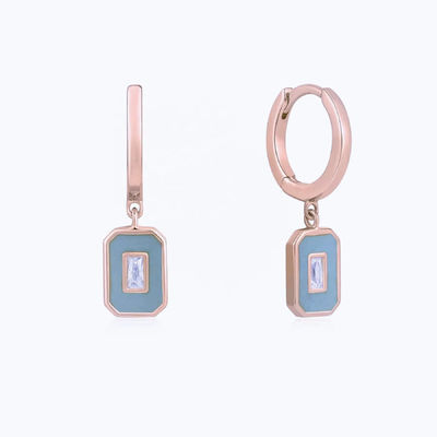 Baguette CZ et boucles d'oreilles en émail 925 en argent 18K plaqué en or,